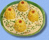 An appetizing main course proposed by Christine, who made them for Carmen's wedding, where, she says, they went over really well. The maraschino cherry garnish was a nice touch, we thought.
