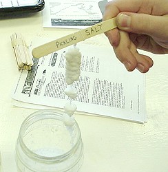 The Grade 5/6 class has been experimenting with various chemical solutions obtained by mixing commonly used ingredients, to see which ones will grow crystals.