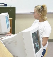 Katlyne pretending to be doing something important.