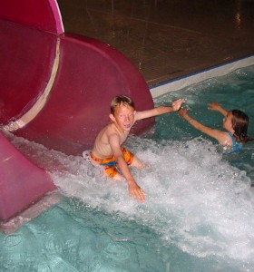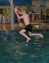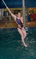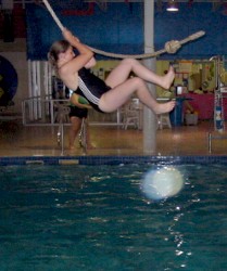 Above is Val on the rope (she wouldn't let go ...), and Emily doing a flip.