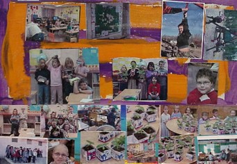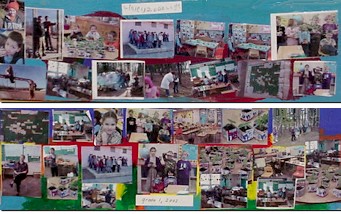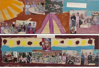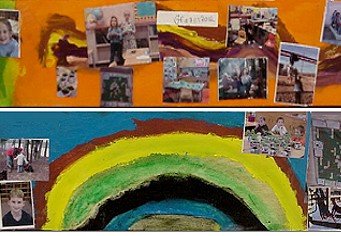 The students had painted pieces of plywood with designs, in bright colours. Onto the painted wood were glued photos from grade 1 and 2 activities held during first and second term. A date was added. At least two coats of 'podgy' were applied by the young crafters to 'finish' their displays.