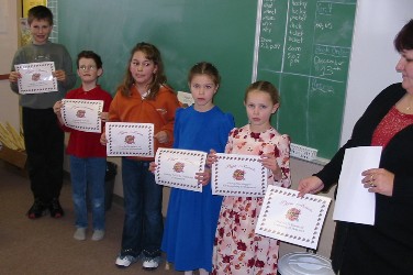 Winners: Grade 1/2: Eva, Margaret Grade 3/4: Travis, Amanda Grade 5/6: Evan, Renessa