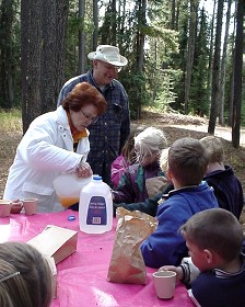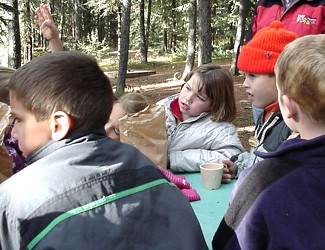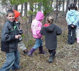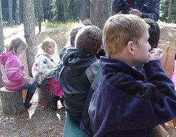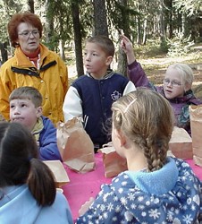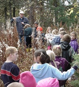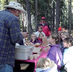 On Tuesday afternoon October 8, the Grade 1 and 2 classes and their teacher Mrs. Gula went on a field trip to Running Lake, north of Worsley. The students were told about some of the plant and animal life of the Northern Alberta region by Forest Educators Victor and Louise Ploc.
