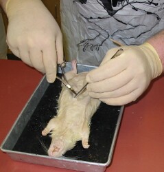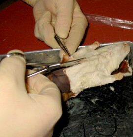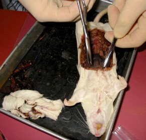 Zoom in on a rat dissection