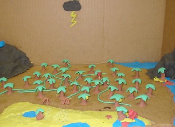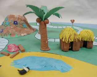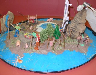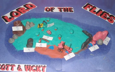 The English 20 class made dioramas illustrating the plot of Lord of the Flies.
