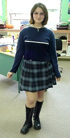 We're not quite sure which teacher Vicky is dressed up as. However, we suspect she is in for a lot more math homework in the near future.