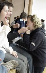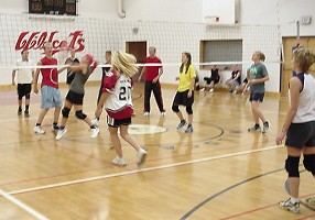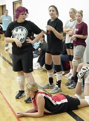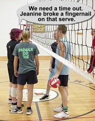 The final score was probably extremely close. Maybe. We think the girls were narrowly edged out of victory by a flukey serve by Bobby that bounced off Kamie's head.