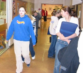 To dramatize the fact that someone in North America dies every fourteen minutes from an alcohol-related accident, some students and staff applied white make-up and didn't speak to anyone else during the day.