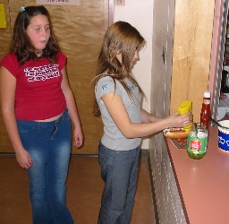 Poor Jeanine (above, right) looked so pathetic, wandering around the hallways looking for someone, anyone, to buy the last two hot dogs. We took pity on her and let her give them to us for nothing.