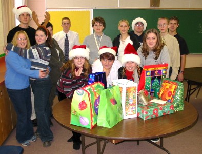 The members of the Student Council got together on Thursday to enjoy pizza and pop, and to exchange gifts.
