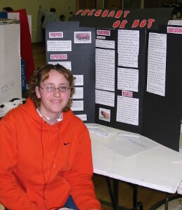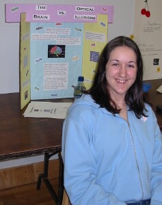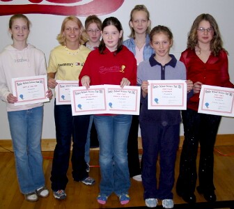 ![]() Second Place Winners Back Row: Sheena & Nic were 2nd in Gr. 9/10 for their phonograph; Danielle & Janine were 2nd in Experiments for measuring the strength of bridge designs. Front Row: Melanie was 2nd in Gr. 5/6 and 2nd in Display/Research for 'Tornadoes'; Wacey & Brent were 2nd in Gr. 7/8 and 2nd in Engineering for 'Hydraulics'. ![]() First Place Winners From the left: Laurie & Katlyne were 1st in Gr. 9/10 and 1st in Display/Research for 'The Eye'; Jocelyn & Beth (at rear) were 1st in Gr. 7/8 for 'Circuits'; Emily (front middle) was 1st in Gr. 5/6 and 1st in Engineering for her working hovercraft; Renessa & Michelle were 1st in Experiments for testing the acidity of various soft drinks. This award is presented to the project that was the best, as determined by the judges. The judges made it clear that all of the four first-place winners had excellent projects, and that the judging took some time to decide on a single winner. This year the 'Best at Fair' award went to Laurie and Katlyne for their project about the eye. The judges were impressed by their depth of research, their obvious understanding of the information they had gathered (which was above their grade level), and by the ingenuity of their display, which included a life-size model of the eye, including attached muscles, and a deer eye which had been dissected to illustrate the parts inside. ![]() ![]() |