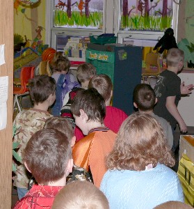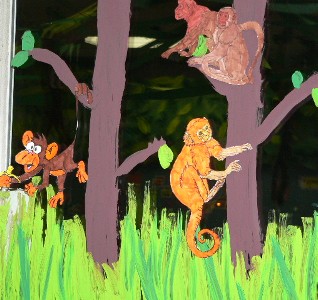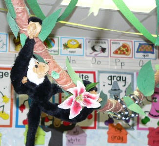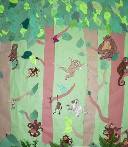 The Grade 1 and 2 classes are reading books about monkeys ... in particular, the 'Five Little Monkeys' series.
