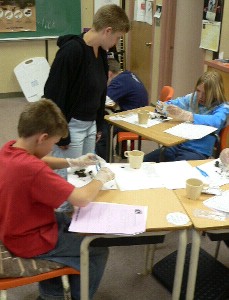 The class investigated Barn Owl pellets by cutting them open and looking at what