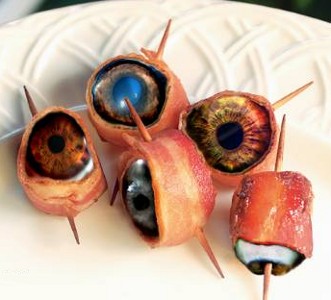 Bacon-Wrapped Eyeballs Gerald wouldn't say where he got the eyeballs from. According to Kristi, they were very flavourful, and tasted like chicken.