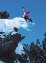 ![]() Dropping the cliffs is something that I have never done. However, watching the guys dropping cliffs looks so intense, it gives you an awesome rush, and you just want to go and do it. Many people will drop 5 foot drops like myself, or even 10. Up here you can't find any drops bigger than like 5 feet. In places like Jasper, Banff and Panorama, their are crazy huge drops 25 feet high. That is something that I don't think I will ever be able to do, but the picture looks killer. |