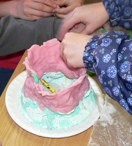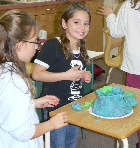 The grade 4/5/6 class was studying volcanoes, and they made models.