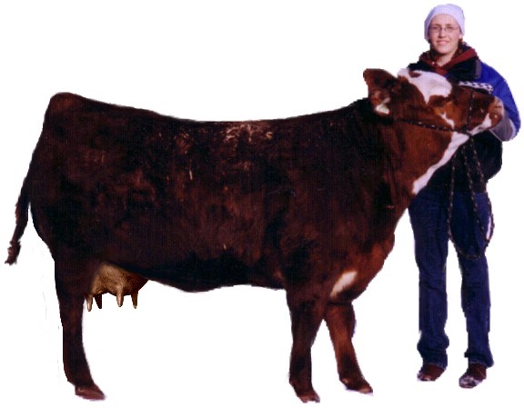 DRESS UP TRENA'S COW FOR GRAD Click on an item of cow apparel; items will appear in the correct place. Double-click on them to delete them. To place an article in front of another, place the 'behind one' first. The Basics: Push-Up Bra Gown Garter Corsage Tail Bow Nylons: Far Front Near Front Back Boots: Near Back Far Front Near Front High Heels: Back Far Front Near Front Masculine Look: Suit Jacket Top Hat Bow Tie Running Shoes: Back Far Front Near Front |