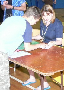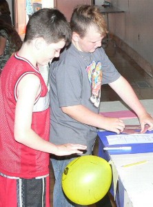 On June 20 Worsley School held its first ever 'Probability in Math' Fair. Students in grades 4, 5 and 6 designed games and activities under the guidance of their Math teacher Rick Carleton, and demonstrated them to a group of judges made up of staff and Sr. High math students. Each of the games demonstrated the students' knowledge of probability.