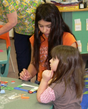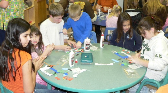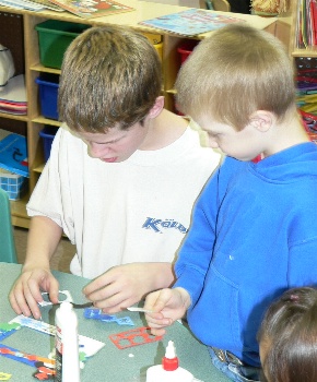 The Grade 6/7 Leadership class helped the Kindergarten students make crafts for Christmas.