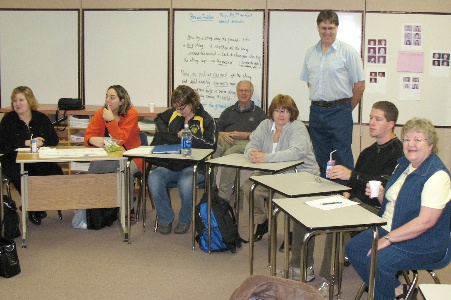 On October 15 the staffs of Worsley, Hines Creek and Menno Simons schools got together at WCS for a joint staff meeting and PD session. Part of the meeting involved a videoconference hook-up with teacher aides at Hines Creek. Also in attendance was former Superintendent Dave van Tamelen.