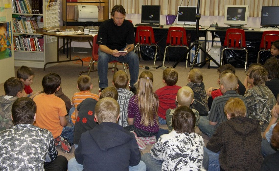 Author Sigmund Brouwer read some of his published work to our elementary students.