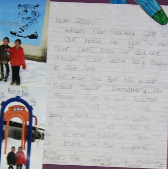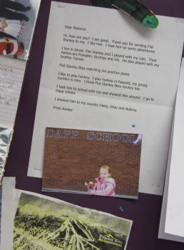 The class also received some pictures of 'Flat Pat' from a class in New Jersey, USA. They took pictures of themselves with Flat Pat, and sent them back to the class in New Jersey.
