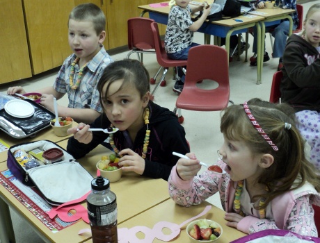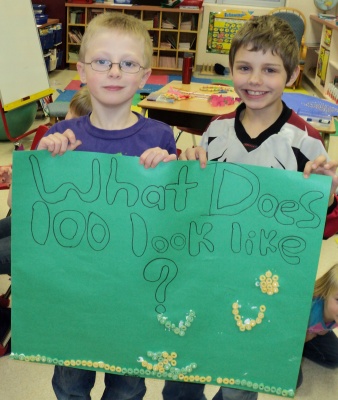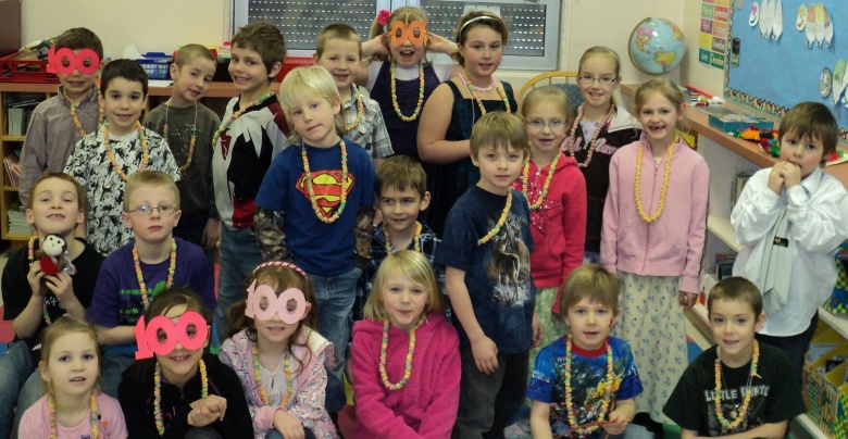 The grade 1 and 2 class celebrated the hundredth day of school