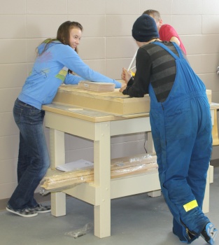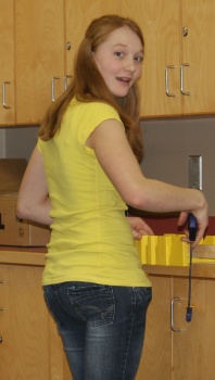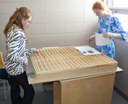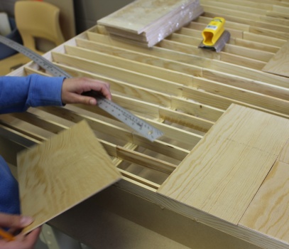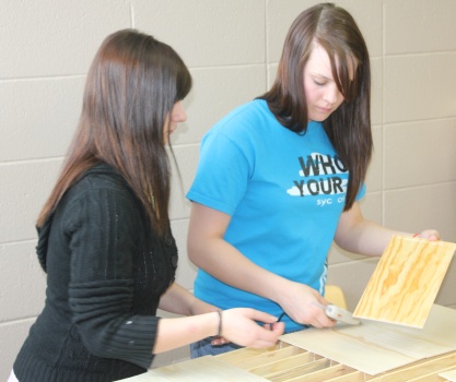 The second portion of the course involves three credits for completing a model house. Students learn proper framing techniques by framing the floor, walls and roof of their houses. Next year we plan to convert the completed models into dollhouses, which we will sell. The conversion will involve all the students' skills in woodworking, sewing, art and even computer technology.