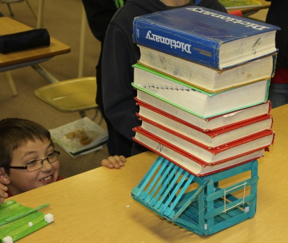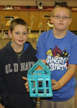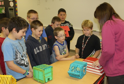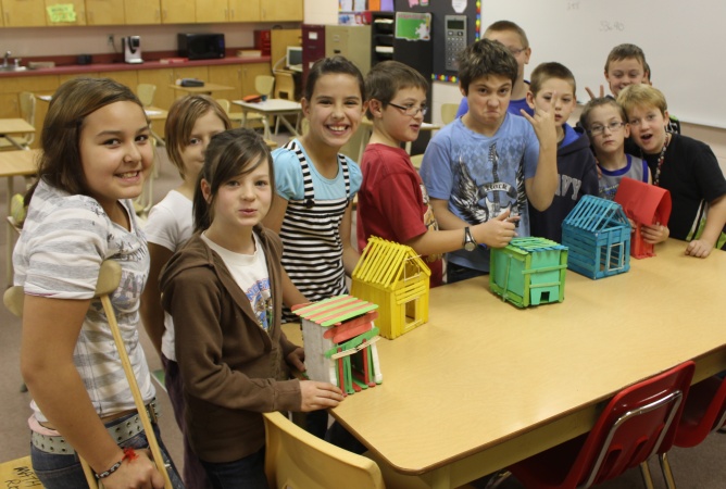 As a followup to their 'Wolf on Trial' activity, the class built houses and tested them for strength.