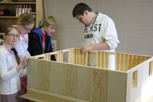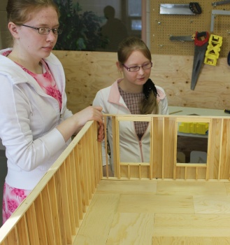 Students have now begun work on a 1/8 scale house. The plans will produce a small model (about a metre long) that will allow students to learn how to lay floor joists and frame walls and a roof.