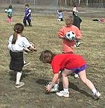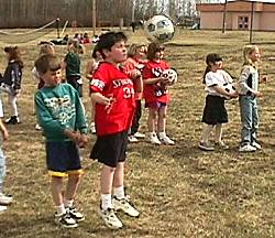 occer practice for grades 4, 3, 2, 1, and Kindergarten began on May 4, 1999. Coached by Miss Griffin, the students are learning a lot of new skills.