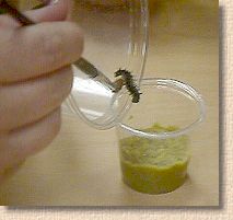 Our first job was to put food in the containers to get them ready for the caterpillars.