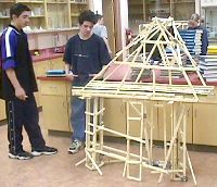The grade 7 and 8 classes are building bridges to learn about how structures can be strong and support many times their weight. |