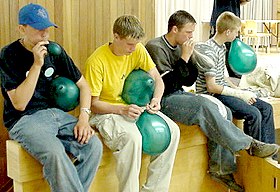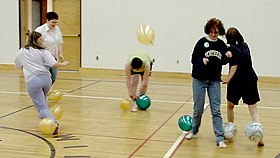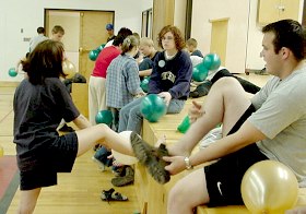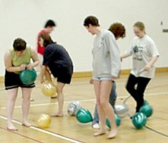 The Balloon Popping contest! Simple rules ... enter the court with two balloons tied to your ankles, and try to pop as many other people's balloons as possible! The last one with an intact balloon survives! (Or, the last one in the gym without a bruised or broken toe wins. But we didn't use that rule.)