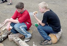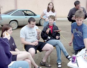 Blake and Melissa showed up when the free hot dogs were served. We made them wash the sticks.