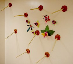Ms. Moen can't help being artistic and creative wherever she happens to be. And with whatever materials come to hand. This work with flowers and toilet plungers is tentatively titled 'Life's Toilet'. We're looking for a big frame ...