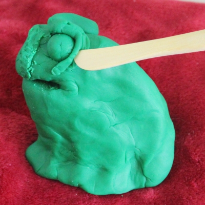 I used Play-Doh to make the model here. While it shapes very easily, it is too soft for proper sculpting; handling it causes details to get smushed. You have to be very careful. Also it gets very brittle when it dries. Between sessions you can keep it soft by storing it in a plastic lunch bag. Small sculpting tools are useful, but you can substitute anything.
