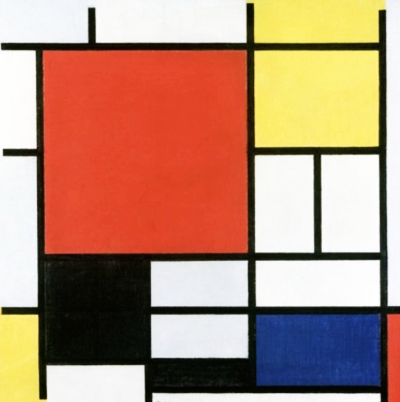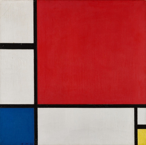 Piet Mondrian was born in 1872 in the Netherlands. He began painting in 1895. Most of his early works were landscapes. Eventually his work became more abstract. In his later compositions, he avoided any suggestion of reproducing the real world. Instead, using horizontal and vertical black lines that outline blocks of pure white, red, blue or yellow, he expressed his conception of 'ultimate harmony and equilibrium'. These paintings are the ones for which Mondrian is best known.