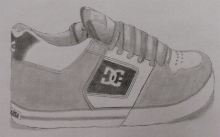 ![]() Page Three ![]() Students are going to draw their shoe! The drawing above was made by a student in grade nine who, like most of the others in the class, professed to having no art ability whatsoever. The drawing you see here was the result after about five 40-minute classes. Centred on a standard sheet of regular paper, it took up about half of the sheet (in landscape view). Some students produced more life-like shoes. Others not so much. All were astounded by the drawings they'd produced. There's no miracle here. The principles that make this work include: they'd never spent that much time on a single drawing in their lives! Step 1: Getting the shape right Students need the same shoe for five classes. It should be an interesting one; runners work best. Set it up on the desk so they're looking slightly down at it. Start the sketch by drawing the outline of the shoe. This is the most important step; if the shape is wrong, it needs to be erased and drawn over and over again until it looks right. Get other people to look at it and make suggestions. This step could take a full 40 minute class. Still sketching very lightly, add big details in the correct places. Sketch in shoelaces, sole line, the tongue, and other distinctive features. When the shape and details look correct, go over the lines to make them darker. Then erase all the left-over sketch lines. Step 2: Shading for colour Some parts of the shoe are different colours. Shade them with a very soft pencil (4B). Blend the areas so pencil lines don't show. Clean up around them with an eraser. Step 3: Shading for shadow Some areas are dark because of shadow, especially inside. Use a blending stick (add graphite to it first if necessary) to make them dark. Clean up the edges with an eraser when done. Step 4: More details Before continuing, make sure all extraneous lines and messiness from blending are thoroughly erased. Now start drawing over little details that may have been hidden by shading. Finish other details that aren't done, like laces and holes, with a sharp pencil. Use a small smudging stick to show the wrinkles. Use it again to add more shadows. Keep looking at the real shoe to find things to add. This stage can take two full periods. Students should be encouraged to criticize their own work. Help them to find mistakes to fix. Get them to seek out others for their suggestions. |