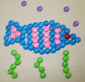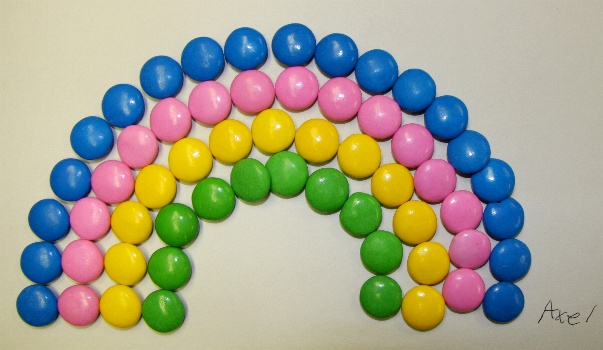 We tried this once, using Smarties to make some art. Because Smarties are so large relative to the size of the paper we used, we were limited to simple designs, rather than any kind of realistic drawing. Nevertheless, they turned out quite well, and the expense was manageable. You should try it! I actually assigned a math class (mostly the same students) the task of investigating what it would cost to reproduce a painting like the Mona Lisa using Smarties. They calculated that to make an image that fairly closely resembled the original would require a canvas that was about two metres wide and tall, and would cost roughly $10,000 in Smarties. Needless to say, we didn't attempt this project. Here are a few samples of their work: ![]() ![]() ![]() ![]() The first step is to buy a lot of Smarties. The cheapest way to do this is to buy them in bulk. Then you have to sort them into colours. Since students will want to eat as they create, it's best to do this wearing disposeable gloves. ![]() ![]() ![]() ![]() ![]() The samples above should give students ideas about how to create an image this way. The students here did not make a pencil drawing, but just experimented with designs. They decided that they wanted to eat their creations, so the Smarties weren't glued to the paper; instead we photographed them to preserve their work for all time! |