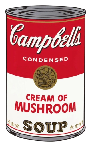 Product labels and logos are often chosen by pop artists, as seen in the Campbell's soup can by Andy Warhol.