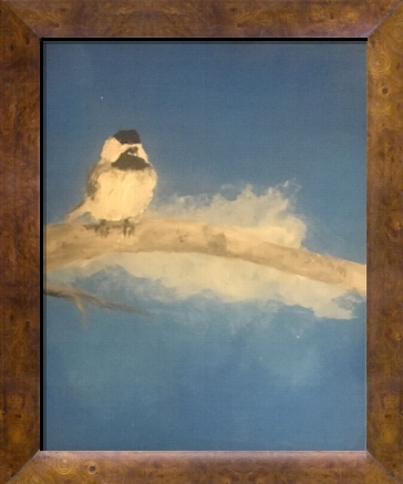 Blind bird on a branch. The eyes are there ... just hard to see!