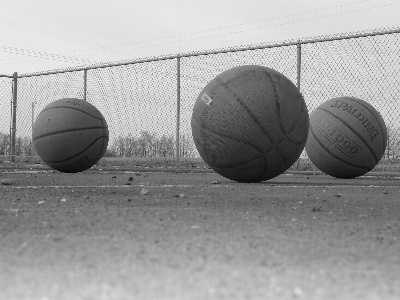 The balls were actually sitting on the court, but the low angle makes it look like they're floating. Great photo!