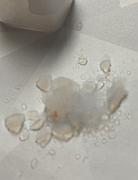 Despite it's crystalline appearance, it doesn't feel like crystals at all because the pieces are so light. They are cloudy, and definitely solid. They are also most definitely a strong dessicant; after handling a few pieces for just sixty seconds my fingertips became very dry, so much so that they felt uncomfortable.