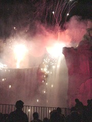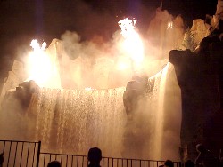 ![]() At the centre of the park is Wonderland Mountain, around which all of the attractions are situated. It has a waterfall, and at least two roller coasters pass through the inside of the mountain. In addition, divers plunge off the top of the waterfall, and for at least one season, just before the park closed, the mountain turnd into a volcano and erupted. All this suggests some interesting ideas from geology which we will examine a little more closely. Erosion This isn't a real mountain, of course, and the falls aren't a river. The water must be pumped back up from the pool below to keep the falls in operation. A real waterfall would continually be eroding the rock beneath the falls. As the water streams over the edge at the top, it would be eroding the lip of the falls bit by bit, especially if the rock is soft, like limestone. This is the case with a real waterfalls like Niagara Falls, which is slowly eating away the rock beneath it, and causing Niagara Falls gradually, over the course of thousands of years, to work its way up the Niagara River. Wonderland Falls don't erode. Here's why. First of all, the entire mountain is made from concrete. This doesn't erode easily, and even if there is damage (perhaps from remaining moisture freezing in winter when the falls are shut down, and cracking the concrete), it is easily patched. Because the falls are shut down in winter, repairs are possible. At the lip, where there is a lot of friction, we noticed that the water doesn't actually run over concrete ... the top of the falls is covered in a thick layer of plexiglass. No erosion ... and it gives the falls a pleasing arc away from the rock face as well. Volcanoes It was very realistic ... so much so that one of the special effects had to be removed after the first year of operation, because of the fear of panic in the tightly packed crowds. Gas jets on nearby buildings, following the 'eruption', made it look like sparks from the volcano had ignited those buildings. Apparently some spectators thought that a real fire had started! In any case, they don't do the volcano any more. It was probably too much of a disturbance to the neighbouring subdivision. Before the park was built, the region was pretty sparsely populated. In fact, there was a small airport nearby where I almost learned to fly a plane. (Don't ask!) Now the region all around the park is packed with homes. You can learn more about real volcanoes here. In a real volcano, a fissure exists through the crust, down into a lower layer of the earth where heat makes the rock molten. When pressure builds sufficiently, this molten rock, called magma, can make its way to the surface through the fissure, and it exits the volcano as lava. This molten rock at thousands of degrees burns everything in its path, and will flow until it cools. Eventually it will break down into particles, rich in minerals, which become the basis for a new, very rich, soil layer. The 'volcano' at Wonderland imitated this process very well, with the use of lighting, sound, fireworks, and gas jets. Lighting on the flowing water simulated flowing lava, and background sound effects and music made the event overwhelmingly real. Here are a few more pictures to give you an idea of what happened. |