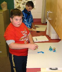 Creating the Frames: After deciding what the animation would look like, our first step was to take ten photographs of the piece of clay. After each picture was taken, we flattened the clay slightly. We planned our animation as a clay blob that flattens itself and then returns to its original shape. (O.K., not terribly exciting, but it was quick to do!) ![]() ![]() ![]() ![]() ![]() ![]() ![]() ![]() ![]() ![]() For purposes of this illustration, and to keep the file sizes small, we resized the images, making them quite tiny. With faster computers and large storage these days, that is no longer necessary; full screen animations are now possible. We also did not use special lighting, or a tripod. You will see that this made the final animation a little 'choppy', but we still managed to obtain a decent result. GIF Animations: A computer gif animation needs a program that will preview the animation, and one to combine your photos into a single file and set the timing. As previously mentioned, we used Irfanview for previewing an animation and GIF Construction Set Professional for creting it. Gif images use just 256 colours or less, so these types of animations may produce unusual colour changes in photos of people, but are ideally suited to drawn animations. Clay animations work fine, if you ignore the backdrop and shadow colour changes. ![]() The advantages of using gif animation? The process is simple, and the final file sizes are small. It is also easy to set the timing between frames, and to fix problems in the timing. Jr. High students master the program after just several uses. ![]() Here is a small animation made by students, There are some disadvantages. Only being able to display 256 colours may be a problem, depending on what is being animated. Also, there is no way to add sound or music to a gif file. ![]() This student animation, called 'Thirst', is a full scene that required about a hundred photos. It was quite tiny; I enlarged it here to make it easier to see, which tends to distort it a little. But you can imagine all the work that went into producing this! MPEG Movies: Mpeg (or mpg) movies allow you to add sound or music to your animation, and to retain all the colours in the original frames. The disadvantages of this format are that the program needed to create and edit videos will be more expensive, and more difficult to learn. We originally used MGI VideoWave III with Jr. High students, who needed about three to four 35-minute classes to complete and edit a video. Later, much more sophisticated video editing software became available, including the simple but quite effective Windows Movie Maker. The last time we made videos in class, I turned all of the video editing tasks over to a grade 7 student who was very good at it. Movies can be quite large in file size. While the tiny movie of this animation shown below is just over half a megabyte, in class we made videos that were hundreds of MB in size. Full screen videos now are often many gigabytes. Available below is the same animation, where we used the same 10 frames (slightly larger this time) and a sound effect, to make an mpeg movie. We didn't make any special effort to coordinate the sound with the pictures, and it still turned out O.K. The addition of sound, and the lack of colour distortion, make a much nicer animation. Also, students can use the skills they've learned to produce and edit live-action videos. A Science Fair Project: Two grade 5 students decided to try clay animation to make a video, and to display their results at our Science Fair. They chose the mpeg movie method so that they could add a music sound track to their creation. ![]() ![]() Their storyboard involved an imaginative tale of knights and dragons, many scenes, and a lot of little characters made from plasticene. They discovered while filming the first scene that keeping their characters intact between photographs, and avoiding damage while changing their characters' posture and position, was quite challenging. Nevertheless, they were able to finish one complete scene, and produce a test movie, which turned out quite well. They then created title and credit screens, and added suitably eerie music. |
