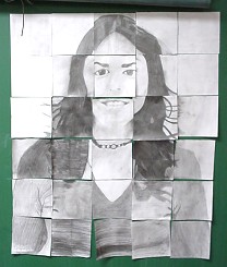 Each student must reproduce his or her segment, using the medium you have decided upon, on the larger squares of paper you provide. Pencil sketches work well, if the students are careful about light and dark values. Most will want to draw a grid on their segment and copy it one section at a time; this method lends itself well to enlargement or reduction of the original work, by copying onto larger or smaller square sections. We always did enlargements.