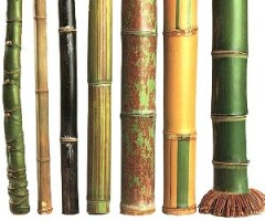 ![]() We decided to find out more about this plant ... everyone seems to be familiar with it, but it isn't much studied in school. We certainly didn't know that much about it before we did some research. Have a look at what we found. As a member of the grass family, bamboo can be recognized by the special structure of its stem, or 'culm', and also by its rapid rate of growth, and its flowering. Bamboo does not flower every year, but once every 7 to 120 years, depending on the species, and usually dies after flowering. Once matured, a bamboo stem remains the same size for the rest of its life. It doesn't grow higher or wider. It doesn't add a growth ring every year as trees do. Bamboo is flexible, bending in strong winds, but rarely breaking. The flexibility is due to its hollow culm, and the nodes, or joints, between segments. The culm, branches and leaves stay green throughout its life, even during winter. Some plants send runners out to establish new plants, while others, called 'clumpers', expand from the original plant. Usually tropical bamboos are clumpers, while temperate bamboos are runners. Bamboo is the fastest growing plant. Some varieties can grow as fast as Bamboo is both decorative and useful. In many parts of the world it is food for people, fodder for animals, an important construction material, and is also used for making a great variety of useful objects. The vascular bundles are what makes bamboo strong. They are similar to the steel rods in reinforced concrete, and make bamboo, when it has been laminated, as strong as soft steel. The vascular bundles also make it easy to split bamboo stems vertically, increasing the number of uses. The roots, called 'rhizomes', are where new plants are formed. New bamboo shoots are produced every year from these rhizomes. Madake is a type of bamboo that apparently flowers only once every 120 years. All types of bamboo flower only seldom, and remarkably, all the bamboo of a given species flowers at exactly the same time. Even if the bamboo is transplanted to different places, it will flower at the same time. Bamboo leaves are sometimes used as fodder for animals; young bamboo leaves and twigs are a favorite meal for elephants and Pandas. |