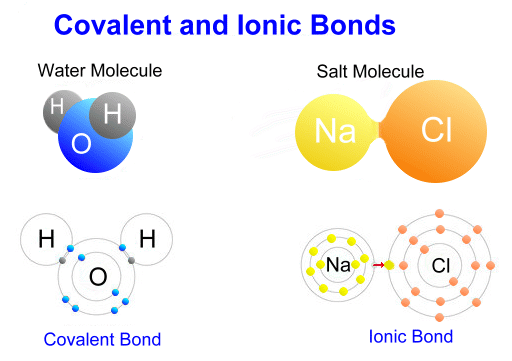 ![]() ![]() Electrons are negatively charged subatomic particles that orbit the nucleus of an atom. The nucleus itself doesn't play a part in chemical bonds; its components don't change or move. The electrons in an atom are what is responsible for forming bonds. The bonding electrons are called the valence electrons; they're the electrons that are found in the outermost shell of the atom's electron cloud. The difference between covalent and ionic bonds is how the electrons are used. - In covalent bonding, two or more atoms share electrons. - In ionic bonding, two or more atoms, as ions, donate electrons to one another. Covalent Bonds Non-metal elements on the periodic table when combined with other non-metals, make covalent compounds. Electronegativity is a value that measures an atom's affinity for electrons. Non-metals that are missing one or two electrons to complete their outer shell have high electronegativity, such as chlorine and fluorine. On the periodic table, electronegativity increases as you move up in a group and to the right across the periods. In covalent bonds, the atoms have similar electronegativity; they share electrons so that both have a complete outer shell. Elements can have different numbers of valence electrons; this can be determined from the periodic table by identifying the element's group. For example, elements in the boron group (3A) have three valence electrons. In a covalent bond, the electrons are drawn to their nuclei by electrostatic attraction. Atoms share electrons to attain a stable electronic configuration. Examples of covalent bonds include the compounds water (H2O), carbon dioxide (CO2), ammonia (NH3), ozone (O3), glucose ( C6H12O6), carbon monoxide (CO), methane (CH4), phosphorus trichloride (PCl3), fructose, and chlorine gas (Cl2). Ionic Bonds Ionic compounds are formed when metals and non-metals combine. Which elements are which can also be determined from the periodic table. These bonds are formed from the electrostatic attraction between oppositely charged ions in a chemical compound. Ionic bonds occur when two atoms have very different electronegativity. The bond forms when the valence (outermost) electrons of one atom are transferred permanently to another atom ... one atom donates electrons to the other. The more electronegative atom takes electron(s) from the less electronegative atom. The atom that loses the electron(s) becomes a positively charged ion (cation), while the one that gains them becomes a negatively charged ion (anion). The ions are arranged so that the positive and negative charges balance one another, so the overall charge of the entire molecule is zero. The size of the electrostatic force in ionic compounds, particularly crystals, is very large. This makes the substances hard and non-volatile (they don't easily evaporate). Salt, for example, has very little smell. Examples of ionic bonds include the compounds sodium chloride (NaCl) , magnesium sulfate (MgSO4), cesium fluoride (CeF), and potassium cyanide (KCN). ![]() A Comparison of Ionic and Covalent Bonds: Generally: