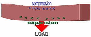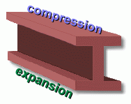 ![]() Steel girders used in the construction of buildings often are I-beams ', which have a cross-section shape resembling the letter 'I'. Most of the material in the beam is at the top and the bottom, which would seem to make the beam weaker. Why are girders shaped like this? ![]() When a girder is used in a building, it must support a load; the girder will bend slightly as it takes up this load. The top region of the girder gets compressed, while the bottom region expands due to the tension force. ![]() Because the center portion of the beam isn't really needed to support the load, most of it is removed to make the beam lighter. The beam is almost as strong as a solid length of steel would have been. Moreover, the top and bottom surfaces are now easily accessible for riveting beams together. |